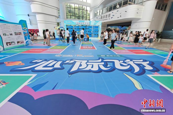 中新网福州8月5日电 (叶秋云)第十三届海峡青年荟·第三届两岸融合特教人才研学营5日在福建福州开营。活动现场,一幅156平方米的巨型飞行棋盘引发关注。