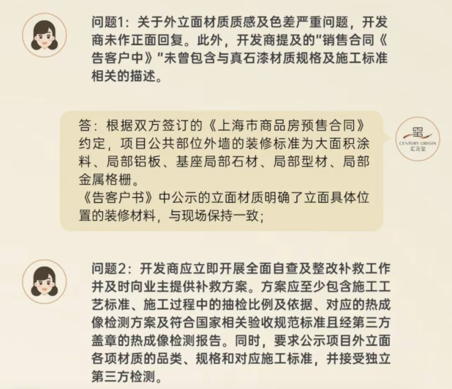 汇元玺位于上海徐汇滨江板块,是热门红盘,首次开盘吸引了超千人认购,认购率达到263%,为同批次楼盘第一名。9月2日晚,“汇元玺”微信公众号发布《告客户书》,将于9月5日和8日设立“业主接洽日”,每次接洽每栋楼各8名业主,并就外立面、施工进度等问题做了回应。