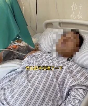 驾驶人朱先生回忆,由于当天天气很炎热,自己驾驶时擦汗导致方向盘发生了偏移,随即,面包车与右侧的半挂式货车发生了碰擦。“撞击的第一时间我也打回了方向盘,但可能袁先生的右胳膊甩了出去,被半挂的左后保险杠挤压了。”当场,袁先生的右臂“断”了成三截,仅剩几公分些许皮肤组织相连。