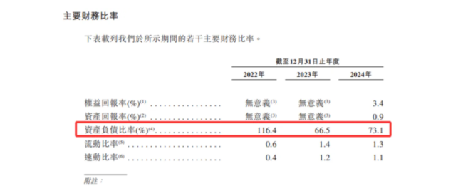 比如,这家公司在营收高速增长的同时,贸易应收款项在两年内却激增了37倍,从2022年的2.23亿元飙升至2024年的83.15亿元,占当年营收比例高达69.5%;债务与资产比率高达73%;现金流指标同样令人担忧。