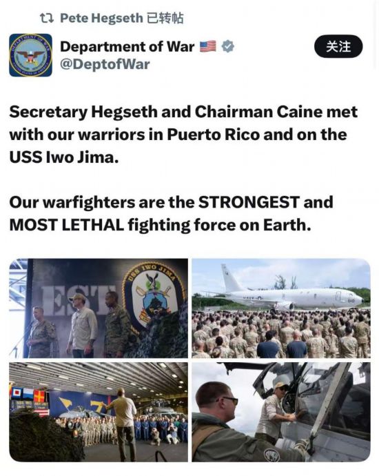 图为美国“战争部”的社交媒体帖文截图