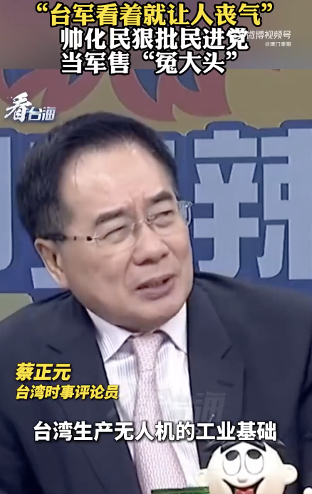 台退将批民进党当局当军售冤大头。“台军看着就让人丧气”帅化民狠批民进党当军售“冤大头”!