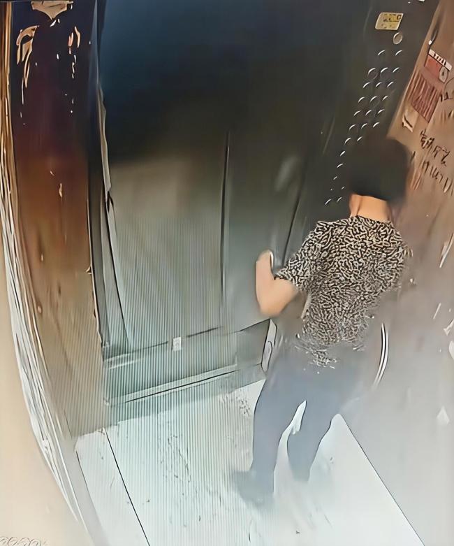找了半天没找到,大娘站起来愣了几秒,突然又把箩筐放回电梯门中间,这步操作倒不算错,毕竟刀卡在里面,万一有人不知情按了电梯,很可能引发故障。可接下来的举动却让人摸不着头脑:她把箩筐放好后,转身像是要去找人帮忙,结果没走两步又折回来,捡起箩筐跨进电梯,按下了一楼按钮。显然,大娘想坐电梯到一楼捡刀。但她没注意到,电梯门在闭合时已经出现异常——门体晃动、闭合速度变慢,这些都是故障的信号。然而大娘仿佛没看见,双手插在裤兜里,神态放松得像平常乘电梯一样,完全没有意识到危险正在靠近。