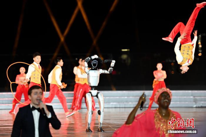 9月18日晚,2025世界大河歌会在长江之畔的重庆市万州区举行。作为2025长江文明论坛重要活动之一,本届大河歌会以“沉浸式互动+国际化表达”为核心,采用开放式舞台设计,将江面游轮、沿岸景观纳入表演空间,来自国内外的知名艺术家通过大型歌舞、川剧、交响乐等形式,展现大河文明的深厚底蕴与时代风采。图为机器人与中外艺术家同台献艺。中新社记者 何蓬磊 摄