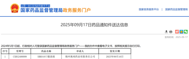 9月17日,NMPA发布了最新一批药品通知件送达信息。值得注意的是,锦州奥鸿药业申报的SBK010口服溶液赫然在列,此产品正是备受业界关注的丁苯酞改良新药。此番SBK010口服溶液出现在药品通知件中,意味着其申报上市未果。