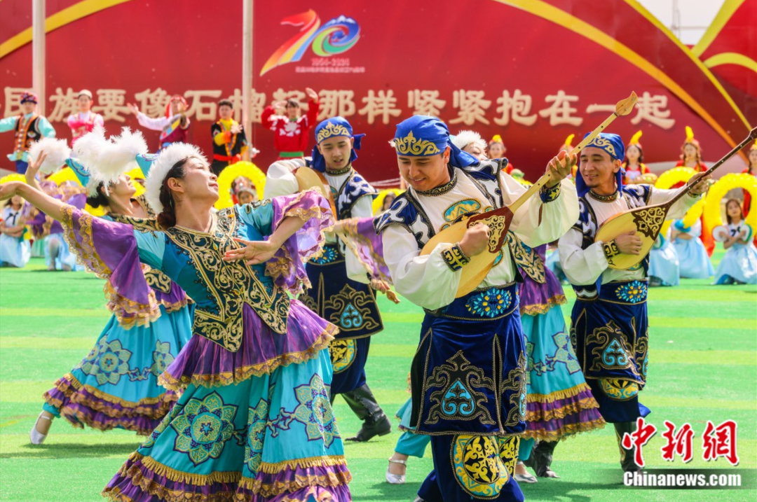 巴里坤哈萨克自治县成立70周年表演。钟伟亮 摄