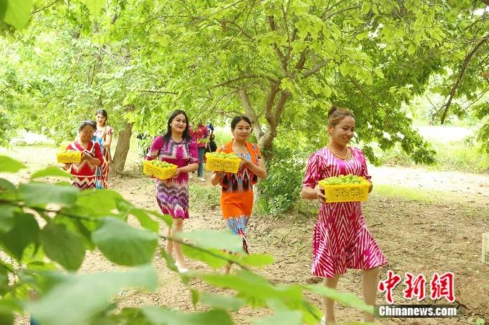 库车市融媒体中心供图当地民众展示小白杏。库车市融媒体中心供图