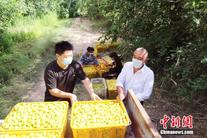 库车市小白杏丰收,百姓采摘。库车市融媒体中心供图