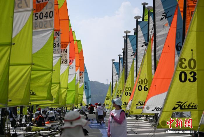 9月27日,选手作赛前准备。当日,2025中国家庭帆船赛·杭州站在浙江杭州临安青山湖拉开帷幕,来自北京、上海、武汉等10个城市的40组家庭近百名选手在绿水青山间扬帆。中新社记者 王刚 摄