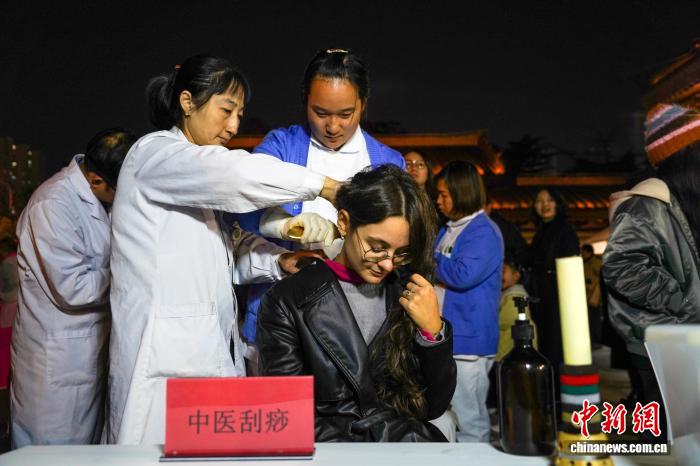 图为外国友人在体验中医刮痧。中新社发 夏青华 摄
