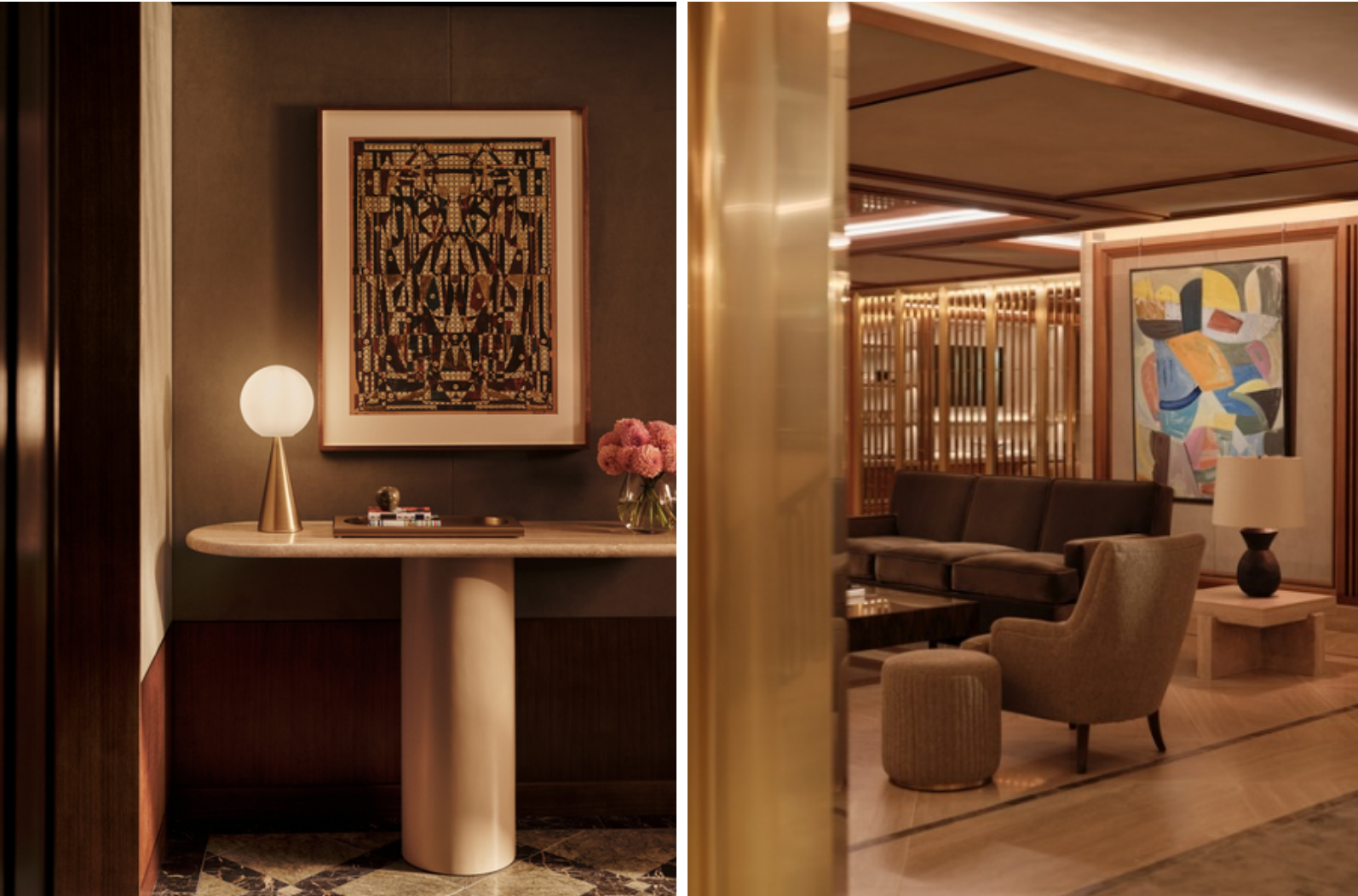伦敦梅费尔瑰丽酒店配置 144 间精心设计的套房,室内设计由法国建筑师 Joseph Dirand 担纲。这位提倡极简主义风格的建筑师以酒店原始的、棱角分明的外观为底,辅以纯粹且优雅的设计笔触,呈现出现代风格与奢华质感相得益彰的内部空间。在氛围营造上,设计师采用温暖丰富的色调,并融入精致的装饰艺术风格细节、胡桃木镶板以及大理石和黄铜装饰,营造出传统英式绅士俱乐部的氛围。