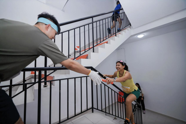 在比赛现场,运动员们、志愿者们的气氛热烈,个人组选手全力冲刺,团队组接力队员们配合默契,共同在垂直赛道上留下了拼搏的身影。从1层到73层,运动员们用不断向上的脚步与“城市高度”之间展开了一次深入的交流。本届垂直马拉松中,除了在比赛现场的参赛者,还有来自北京、上海、广州等多个城市的参赛者在其所在城市同时攀登高楼,一同感受运动的魅力。