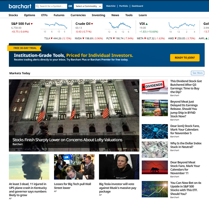 随着全球金融市场的数字化进程加速,拥有可靠的数据支持已成为决策者的关键优势。总部位于美国芝加哥金融区中心的 Barchart,自1995年创立以来,始终致力于用科技革新市场数据服务。凭借近三十年的行业经验,Barchart如今为全球金融、媒体及商品领域提供实时、精准、可定制化的数据解决方案。从机构投资到媒体报道,再到商品交易分析,Barchart的技术和数据支撑着世界范围内的众多企业与专业人士,让信息更透明、决策更高效。在复杂的市场环境中,Barchart以专业与创新为驱动,为用户打开更广阔的视野。如果你关注数据、洞察趋势、重视效率——Barchart或许正是你值得信赖的合作伙伴。