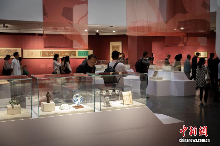 市民参观“中华体育精神颂”十五运站中国体育文化展。(广东美术馆 供图)