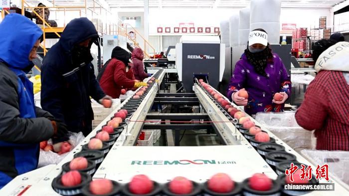 图为延安洛川一工厂内的智能化选果线。李进 摄