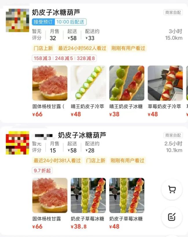 记者搜索发现,甚至有奶皮子糖葫芦商家在自家商店上架了固体杨枝甘露,主打一个啥也不落下。不过并不是每一阵风潮都得跟随,有甜品店店主直言自己复刻过这个品,但感觉口味一般达不到上架标准就没有卖。