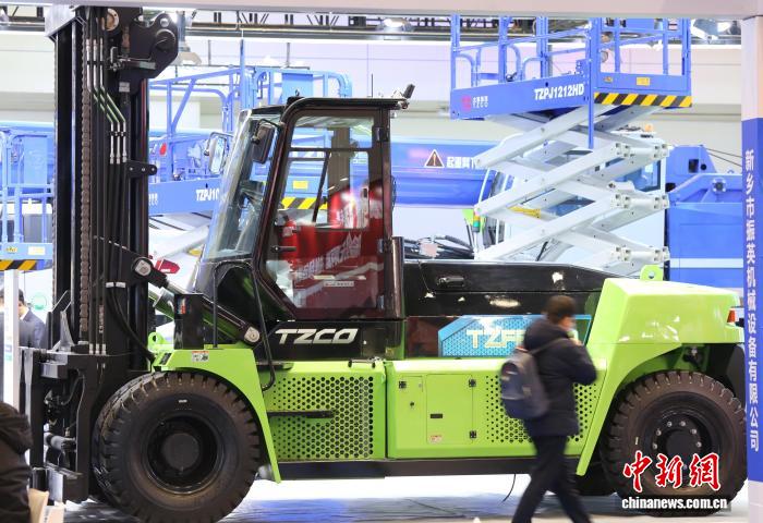 11月21日,2025第二届中国(郑州)数字化与先进装备制造业博览会在郑州国际会展中心开幕。本届博览会以“高端化、智能化、绿色化、融合化”为主题,设有数字化与未来产业展区、先进装备展区、工业自动化与机器人展区、新型电力设备与能源装备展区等。图为博览会展示的一辆16吨锂电平衡重叉车。中新社记者 刘鹏 摄