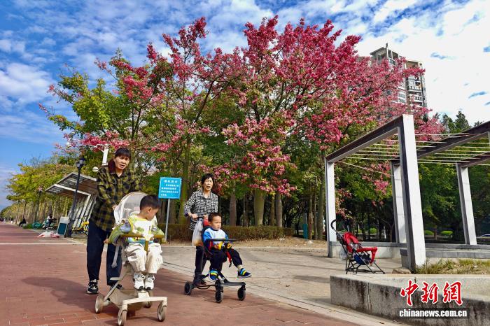 11月24日,初冬时节,市民在福建福州乌龙江湿地公园游玩。中新社记者 王东明 摄