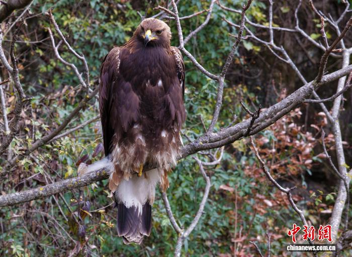 中新网恩施11月24日电 (焦国斌 吴以红 董晓斌)记者24日从湖北巴东金丝猴国家级自然保护区(以下简称巴东金丝猴保护区)获悉,该保护区工作人员日前在巡护时,近距离拍摄到了金雕的清晰影像。