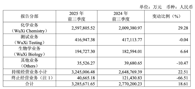 截图来源:药明康德2025年前三季度业绩报告