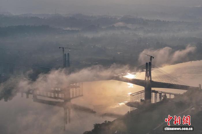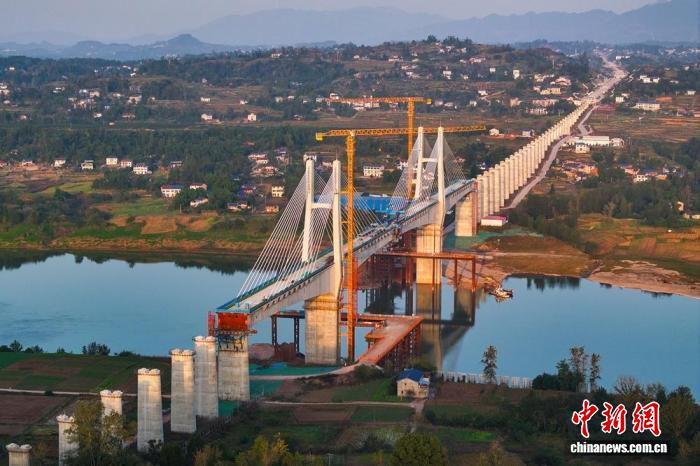 中新网达州11月26日电 (记者 刘忠俊)11月26日8时左右,经过建设工人12个小时的连续浇筑,四川成都至达州至重庆万州高速铁路(以下简称“成达万高铁”)全线控制性工程,矮塔斜拉桥——渠江特大桥顺利合龙,为项目早日建成通车奠定了坚实基础。