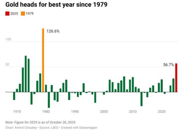 黄金今年经历了史诗级的飙升行情——2025年至今已累计暴涨56%。金价的连创新高,被许多市场人士归因于人们对财政支出居高不下、高公共债务、宽松货币政策以及法币价值蒸发的担忧上。