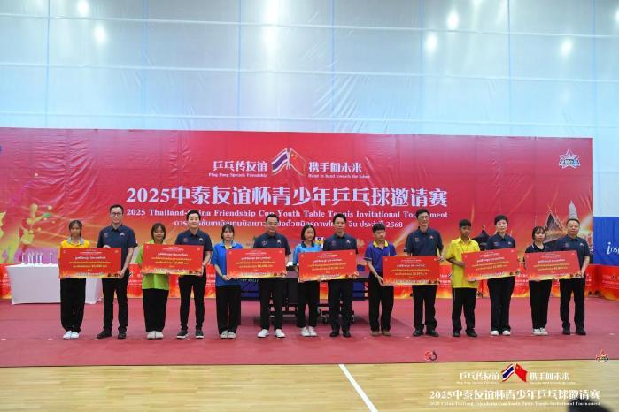 本次赛事恰逢中泰建交50周年这⼀具有重要意义的历史节点,在两国政府及社会各界的大力支持下,该赛事成为象征友谊、深化合作的重要体育文化交流盛事。“2025中泰友谊杯青少年乒乓球邀请赛”成功举办不仅展现了两国体育实力,更进⼀步巩固了中泰之间跨越半个世纪的传统友谊,为未来两国体育交流、合作及发展奠定坚实基础。