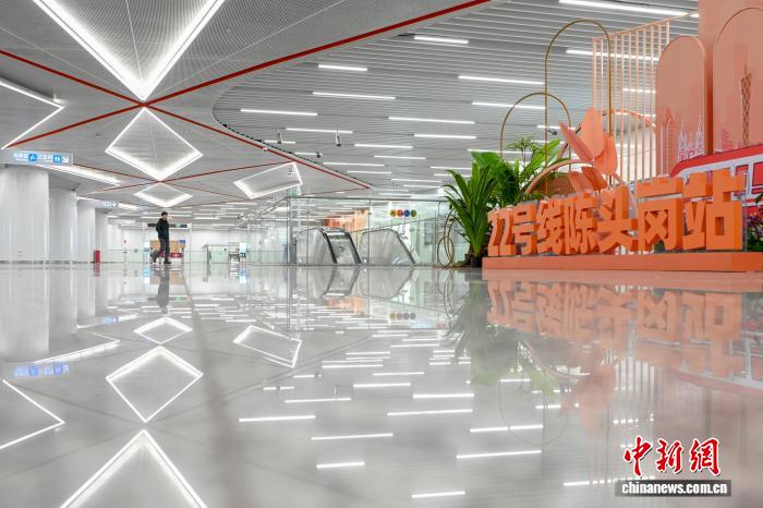 12月29日,广州地铁二十二号线后通段正式开通初期运营,广州地铁线网运营总里程达到779.9公里。二十二号线后通段的开通实现了广州西部与南部的快速轨道交通联系,增强了广州南站的综合交通枢纽功能,同时承担连通广州南站、白鹅潭两大枢纽的重要作用。图为二十二号线陈头岗站投入运营。中新社记者 陈骥旻 摄