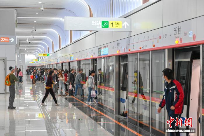 12月29日,广州地铁二十二号线后通段正式开通初期运营,广州地铁线网运营总里程达到779.9公里。二十二号线后通段的开通实现了广州西部与南部的快速轨道交通联系,增强了广州南站的综合交通枢纽功能,同时承担连通广州南站、白鹅潭两大枢纽的重要作用。图为市民在二十二号线芳村站乘车出行。中新社记者 陈骥旻 摄