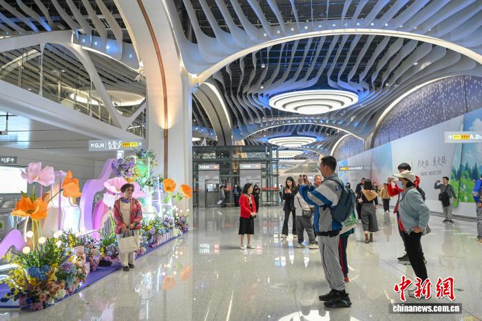 12月29日,广州地铁二十二号线后通段正式开通初期运营,广州地铁线网运营总里程达到779.9公里。二十二号线后通段的开通实现了广州西部与南部的快速轨道交通联系,增强了广州南站的综合交通枢纽功能,同时承担连通广州南站、白鹅潭两大枢纽的重要作用。图为市民在二十二号线芳村站拍照留念。中新社记者 陈骥旻 摄