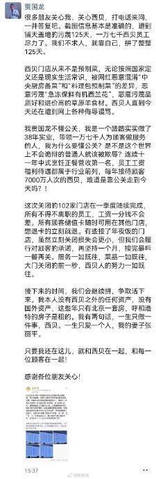 有西贝闭店员工称关闭是因租金到期 网络污蔑引发大规模闭店