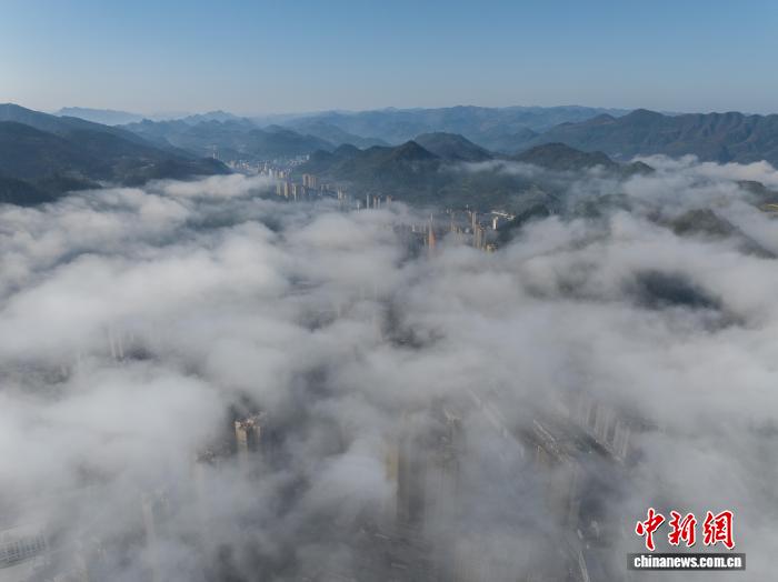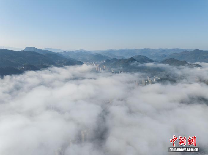 贵州务川现平流云景观 山城宛若画卷