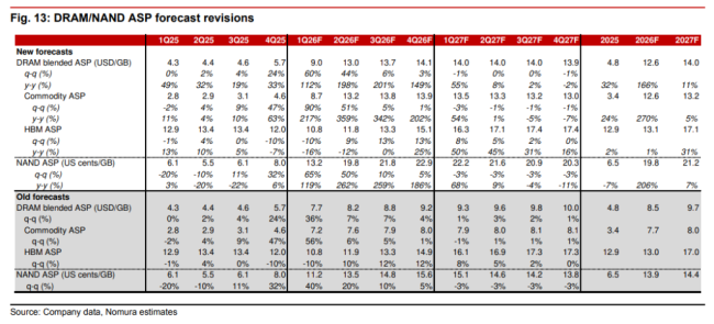 野村证券最新预测显示,2026年第二季度大宗DRAM和NAND价格将环比分别上涨51%和50%,较此前预测的6%和20%大幅上调。