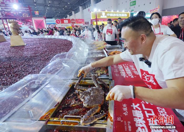 图为糖酒会上的巨型火锅。中新社记者 安源 摄