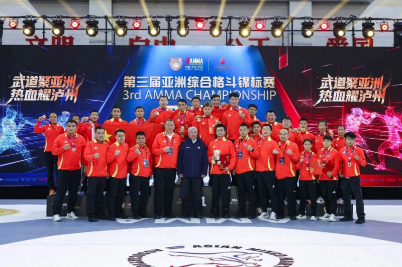 千岁国际集团董事局主席、JCK战觉城品牌创始人杨宇,还有一个特殊的身份——国家综合格斗队总教练。他多次率队出征,将产业积累的成果直接转化为国家荣誉。2023年,他带领中国队在泰国亚洲综合格斗锦标赛上斩获12枚金牌,赢得团体总冠军;2026年初,第三届亚洲综合格斗锦标赛在四川泸州举行,他再度挂帅,率队勇夺7枚金牌,蝉联团体总冠军。当五星红旗一次次在赛场升起,这背后,正是无数个日夜科学训练的支撑,是数百场赛事实战经验的积累。
