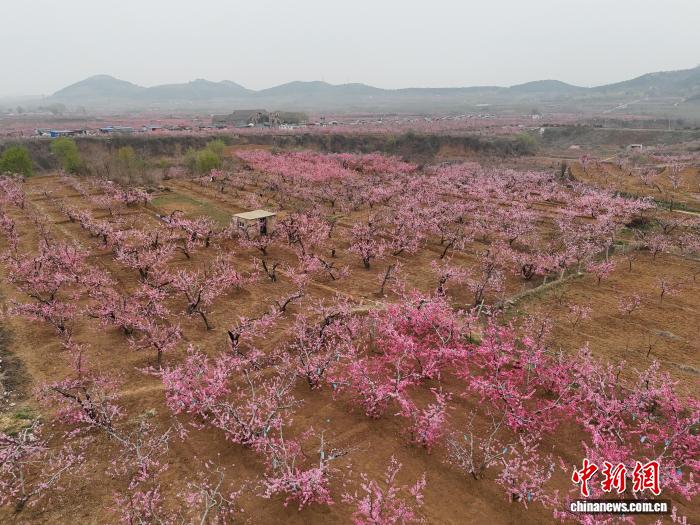 4月1日,山东泰安肥城10万亩桃花迎来最佳观赏期。刘台桃源胜境等核心景点繁花似锦,粉嫩花海连绵起伏,吸引各地游客踏青赏花。(无人机照片)陈阳 摄