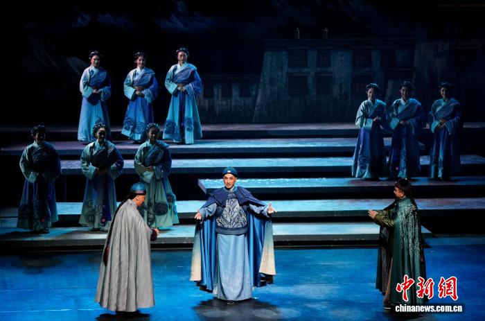 图为藏·粤史诗剧《驻藏·张大人》演出现场。中新社记者 李林 摄