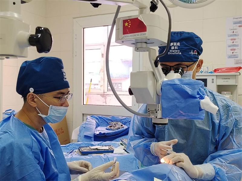 医疗队在进行眼科手术。第34批援赤道几内亚中国医疗队供图