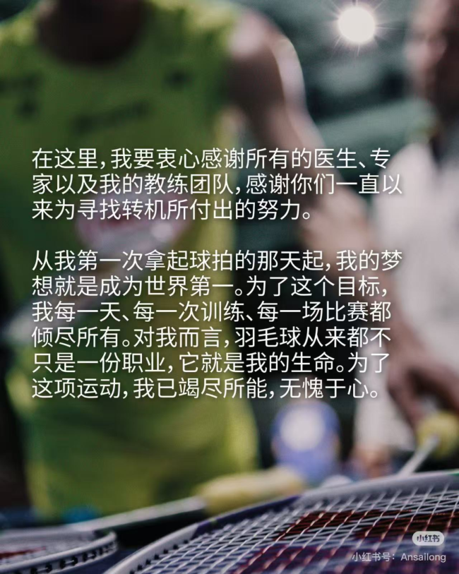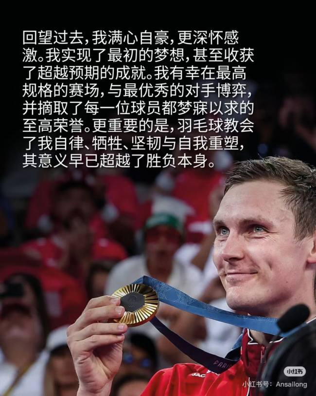 世界羽联也在官方发布了这一消息,并配文称:“他留下的不只是冠军与纪录,更是一段属于男子单打的时代记忆。传奇,不说再见。谢谢你,安赛龙。”
