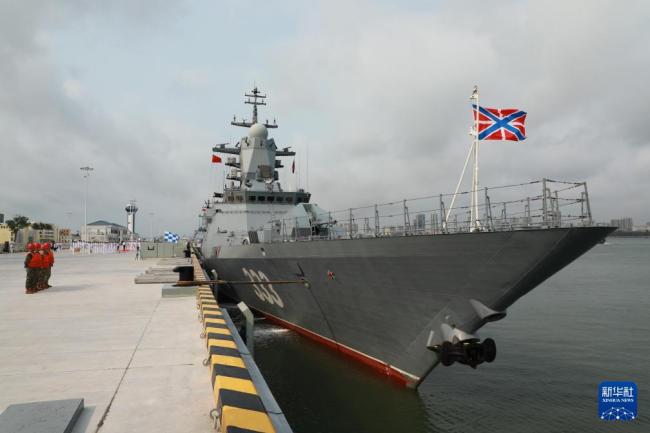 4月15日,由俄罗斯海军“完美”号、“凛冽”号护卫舰和“佩琴加”号中型油船组成的舰艇编队抵达广东湛江某军港码头,开始为期5天的友好访问。多艘舰艇依次靠泊,展示了两国海军之间的友好关系。此次访问期间,双方将进行一系列交流活动,增进彼此了解与合作。