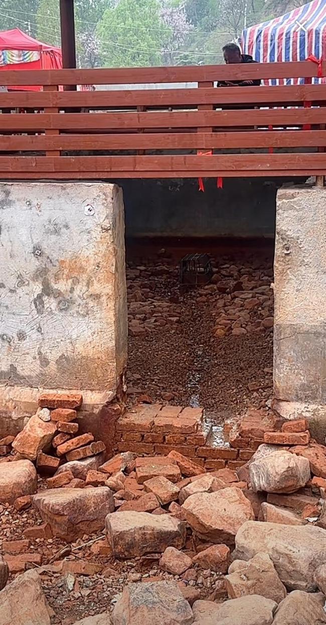 网友拍摄的视频显示,贾鲁河源头的一眼河边机井周围堆砌了围墙,只留出一道门供泉水流出,涌入附近的河道。机井口上方建有凉亭,供游客和村民观赏泉水,机井口则加盖了防护罩。目前,机井口的泉水已经断流。