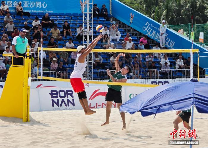 当天上午9时,比赛在位于天涯海角游览区的沙排场地准时鸣哨。率先登场的男子组合张泰/周朝威对阵不丹组合。两人配合默契,攻防两端压制对手,直落两局获胜。紧随其后出场的另一对中国男队组合吴佳欣/王延伟同样发挥稳健,以2比0战胜中国澳门组合戴坤铖和谭哲明。