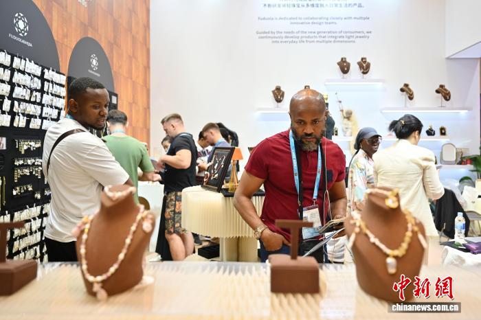 图为时尚饰品专区吸引不少境外采购商参观。中新社记者 陈楚红 摄