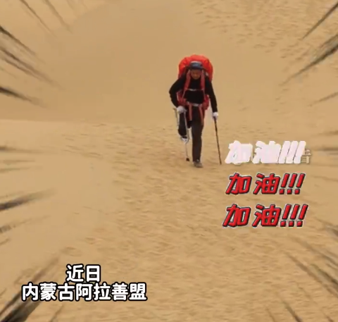 近日,内蒙古阿拉善盟。一位残疾小伙拄拐正在沙漠中前行,身上背着大背包也没有拖累他前行的步伐,每一步都在沙地上留下坚定的印记。拍摄者程先生表示:“觉得这个大哥很棒,特别激励人心,鼓舞着更多的年轻人去户外亲近大自然。”网友:苦难从来不值得歌颂...