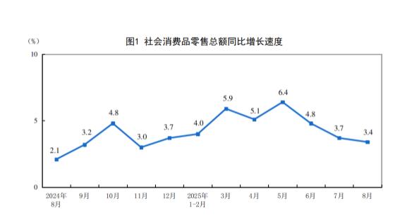 中新网9月15日电 据国家统计局网站消息,8月份,社会消费品零售总额39668亿元,同比增长3.4%。其中,除汽车以外的消费品零售额35575亿元,增长3.7%。1—8月份,社会消费品零售总额323906亿元,增长4.6%。其中,除汽车