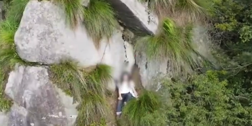 6月13日14时19分,江西九江庐山风景区内,一名游客为捡掉落悬崖的手机翻越栏杆,不慎滑落至近乎垂直的崖壁陡坡,被困于灌木丛中,身体多处擦伤,随时有坠落风险。当地消防、公安接警后,立即通过无人机定位,在崖壁周边架设支点设置保护绳,消防员沿绳...
