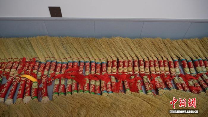 中新网兰州4月16日电 (杨蕊)“纯手工活儿,边做边卖,这个季度收入已近8000元,现在剩下不到一百把笤帚了。”甘肃庆阳市环县手艺人李相玉最近通宵达旦地整理着高粱苗,“五一”快到了,他得加紧再做一些笤帚。
