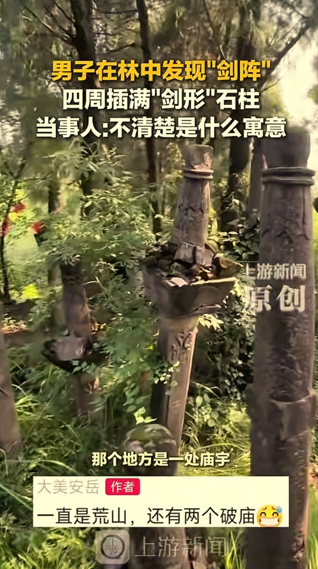 四川一男子在林中发现“剑阵”。“万万没想到!”四川资阳,男子去山上游玩,本以为是一片荒山,不料,他竟然直接愣在了原地,不是因为发现了宝贝,而是被眼前成片的“石头剑阵”吸引住了,男子傻眼了,看了半天也不愿意离开。以前看过的武侠剧和小说,男主受...