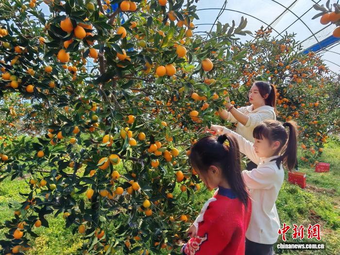 中新网福建尤溪1月16日电 (雷朝良)眼下,“中国金柑之乡”福建省尤溪县正迎来金柑丰收季。在管前镇绿柳村,漫山遍野的金柑缀满枝头,吸引众多游客前来采摘。种植大户卓开建望着金黄饱满的果实,满脸喜悦地说:“今年