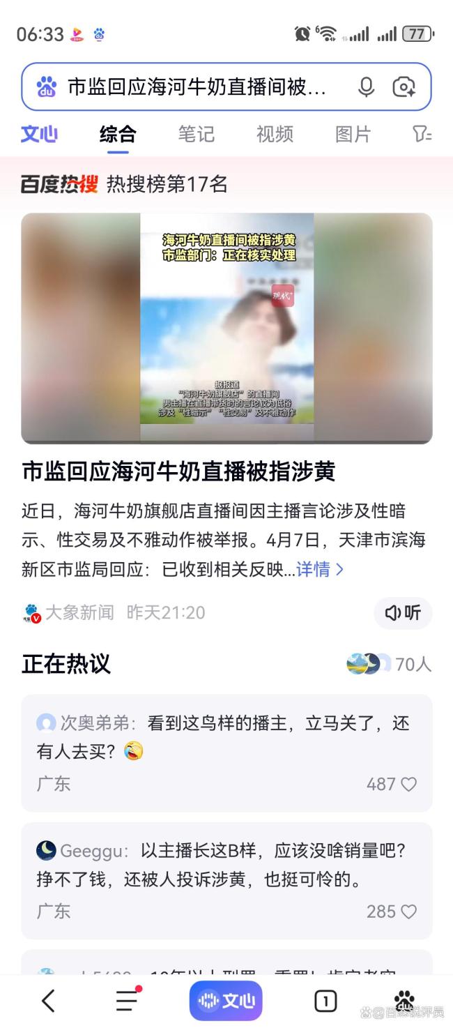 天津海河牛奶抖音直播间因涉黄内容引发广泛关注。2026年4月7日,该直播间被曝长期存在低俗言论和不雅动作,主播频繁使用性暗示词汇如“崩锅”等,导致一名六年级女童学会并询问家长这些词汇的含义。此事迅速在网络上引起公愤